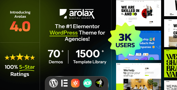 Arolax is a multi-purpose, clean, and animation-focused agency portfolio WordPress theme designed for digital agencies, creative agencies, digital marketing agencies, IT agencies, software agencies, portfolio showcases, web design and development agencies, SEO agencies, and start-up businesses.