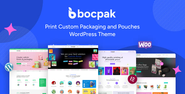 Bocpak – Print Custom Packaging and Pouches WordPress Theme is a modern and versatile theme designed for print shops, custom packaging businesses, and eCommerce stores. With WooCommerce integration, it allows you to effortlessly set up an online store for custom packaging and print products. Bocpak features a responsive design, customizable templates, and easy navigation, making it perfect for showcasing your services, from photocopying to print-on-demand. Elevate your business with Bocpak’s sleek and functional design, tailored to meet the needs of the print and packaging industry.